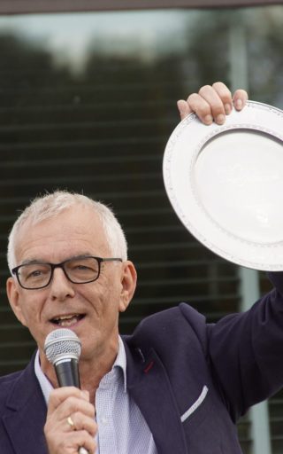Roel ’t Hart werd deze middag ook in het zonnetje gezet en ontving een boeket uit handen van de locoburgemeester. Roel ‘t Hart is al 75 jaar lid en nog steeds actief als lid van de materiaalcommissie. In deze rol is hij nog altijd wekelijks te vinden op het sportpark.